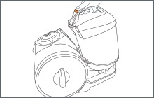 Refer to maintenance tab for instructions on how to empty and clean the dirt container