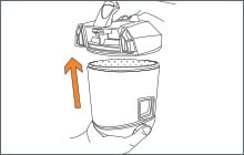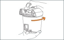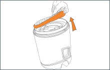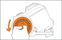 Place your hand over the hole located on the machine, where the lid of the dirt container is normally attached to