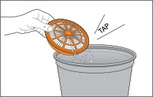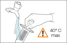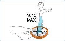 Rinse the filter under the tap (max 40 degrees, no detergent) allow at least 24 hours for it to fully air dry before placing back in the machine