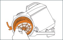 Remove the lid and lift the filter out of the top of the dirt container, tap to get all of the dust off