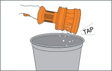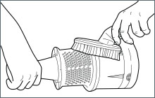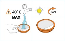 Rinse filter under the tap (no detergent) and allow 24 hours to air dry
