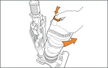 Drop a small ball of paper down the top of the hose, this is where the hose meets the dirt container