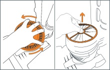 Remove the lid and lift the filter out of the top of the dirt container, tap to get all of the dust off