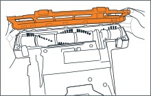 Place your hand over the two holes located at the top of the machine, this is where the lid of the dirt container is normally attached to